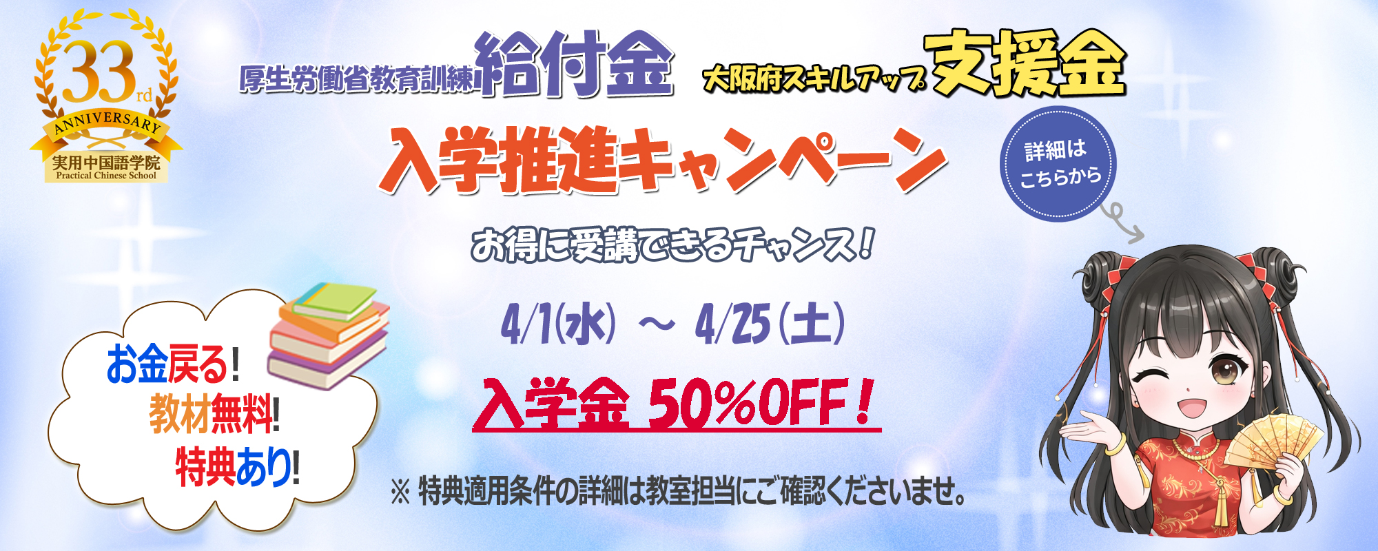 実用中国語学院は33年の歴史と経験を持つ、大阪の梅田と本町にある中国語教室です。