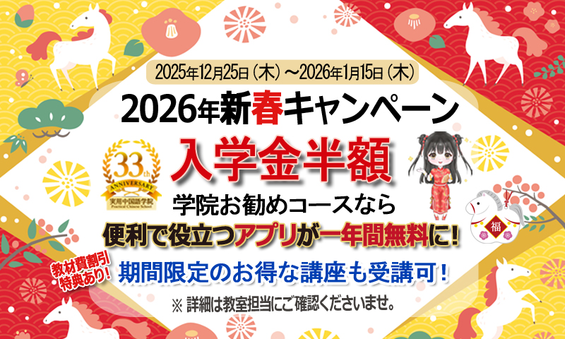 実用中国語学院は2026年も皆様の中国語学習を応援します!