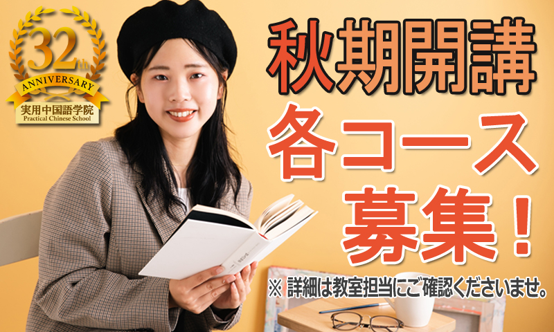 実用中国語学院では、秋期開講受講生を募集します!