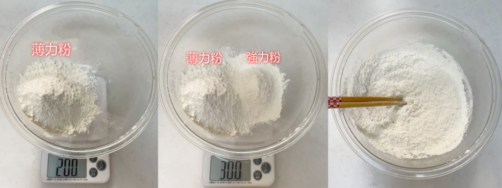 1.大きめのボウルを用意し、小麦粉を入れてよく混ぜます。