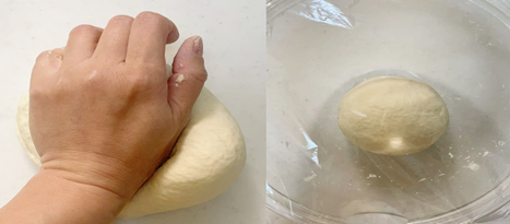 3.その後、手の付け根で生地をよくこねます。硬い塊がなくなり、生地がなめらかになったら、ラップをかけて15〜30分ほど休ませましょう。